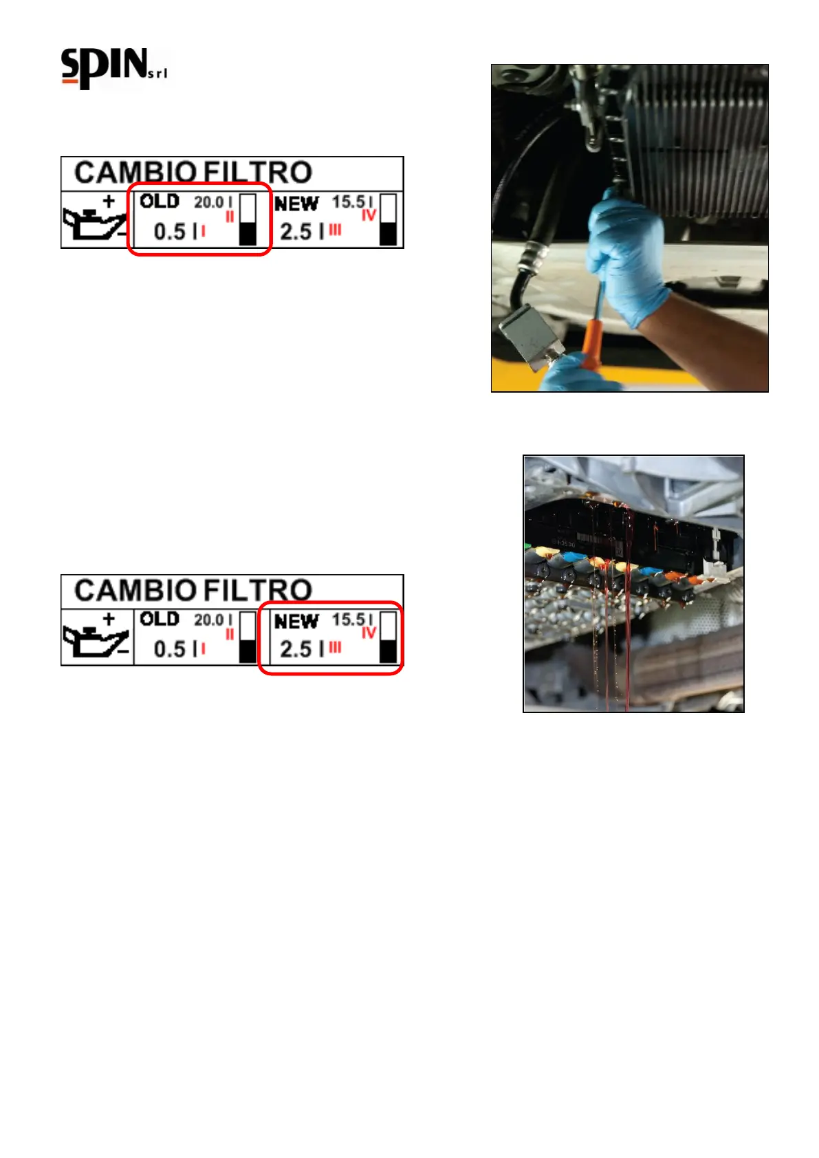 load the oil into the sump with a quantity equal to that removed and displayed in field (I).