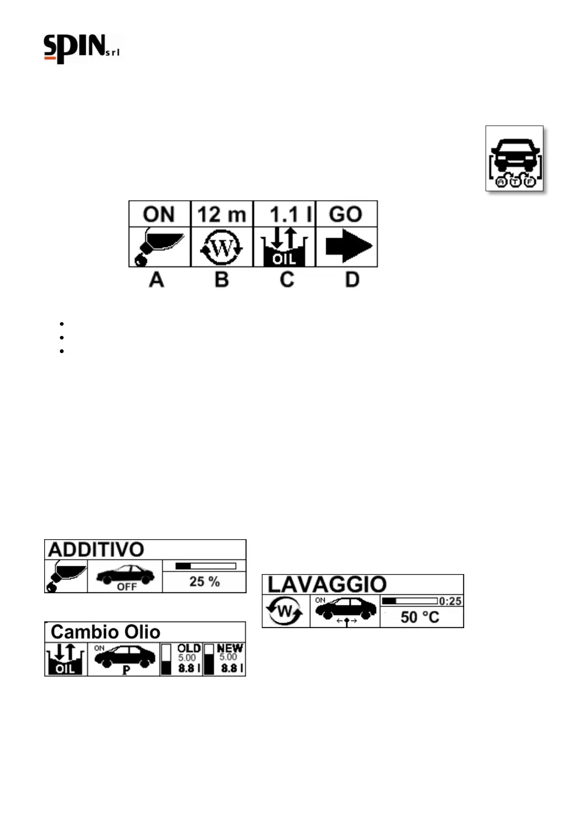 När den automatiska proceduren har startats arbetar användaren endast på bilen såsom visas på displayen under