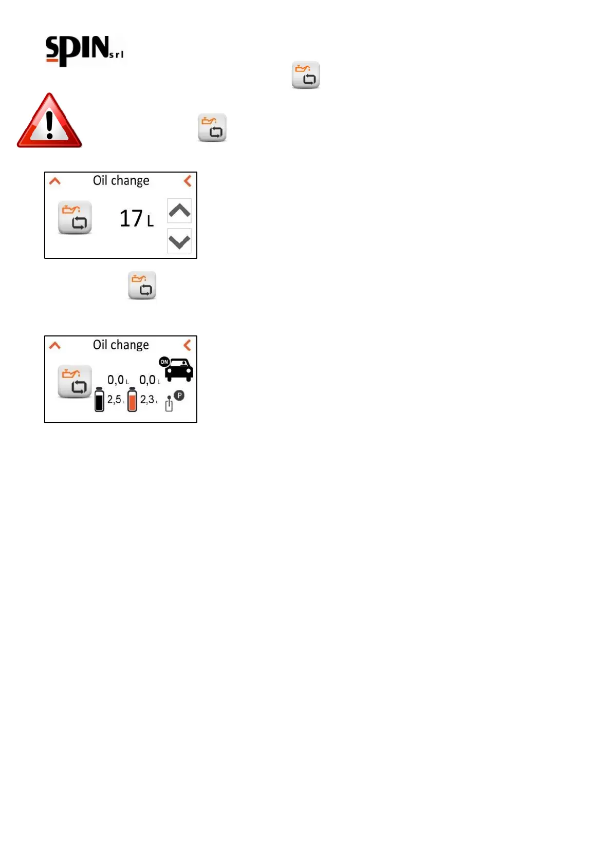 Il processo termina automaticamente quando sarà stata scaricata e caricata la quantità di olio precedentemente