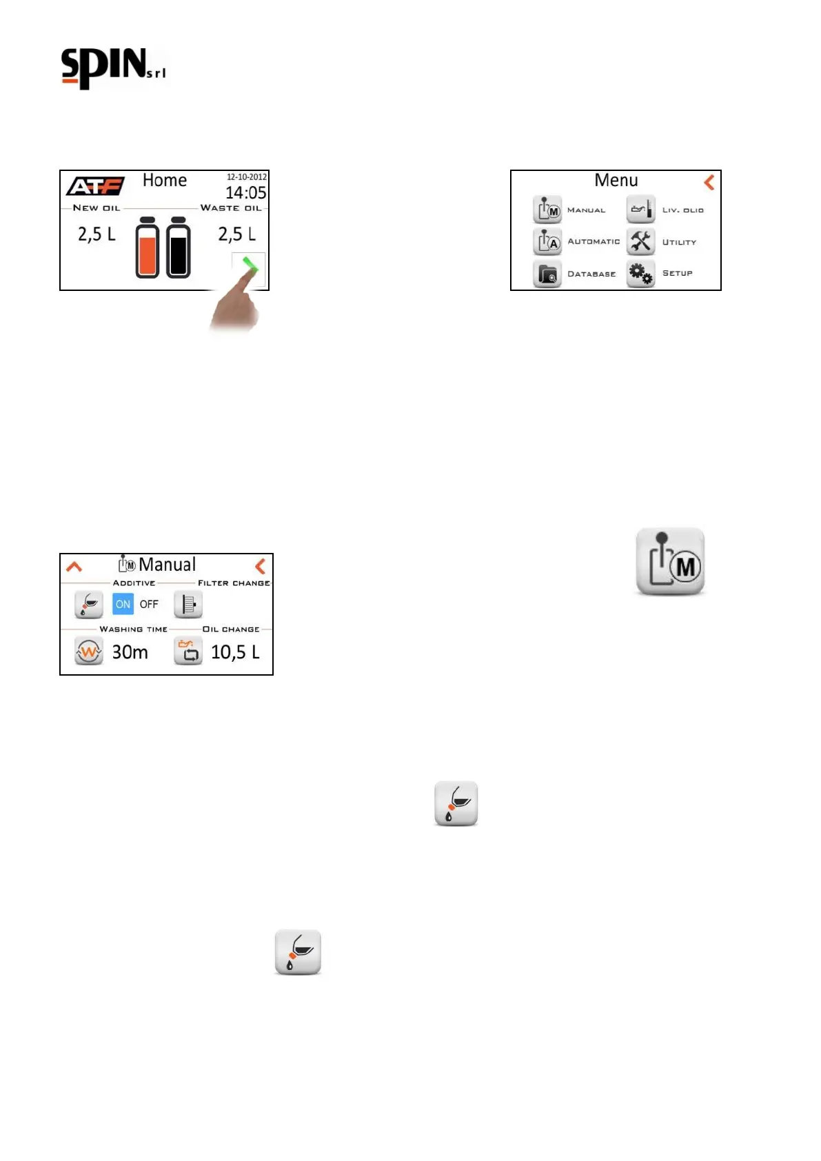 During the manual procedure the following operations can be performed: