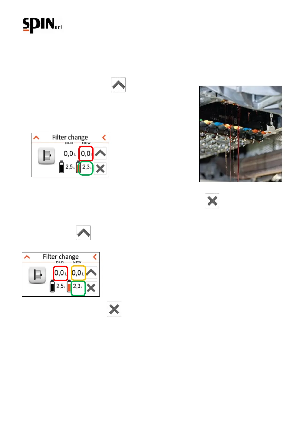 quantity of oil will be displayed in the “NEW” field (you can see it in red