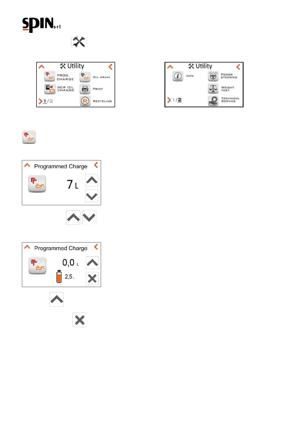 From this screen you can set a given quantity of oil to be charged into the gearbox.
