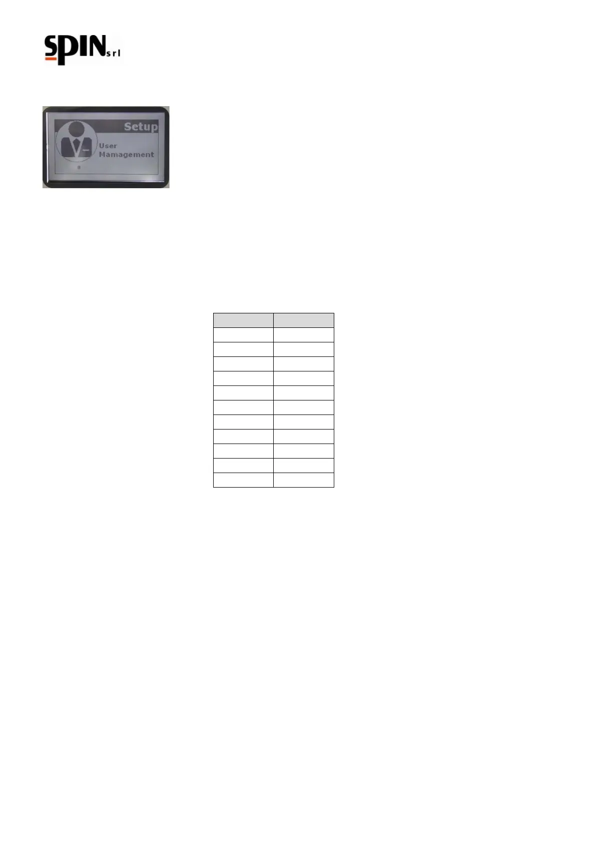 Once inside the "User Management" menu, the user (00; 01; 02;…;10) with its password will be shown.