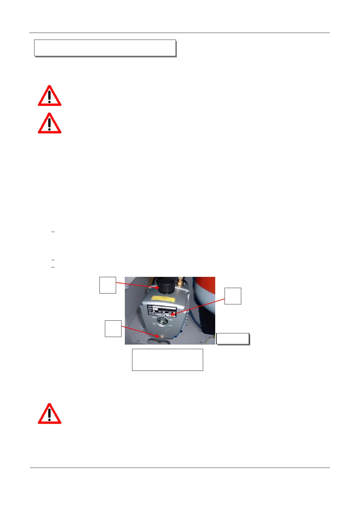 Replace the pump oil every 100/150 hours of functioning or at least every 1 year even if the station is