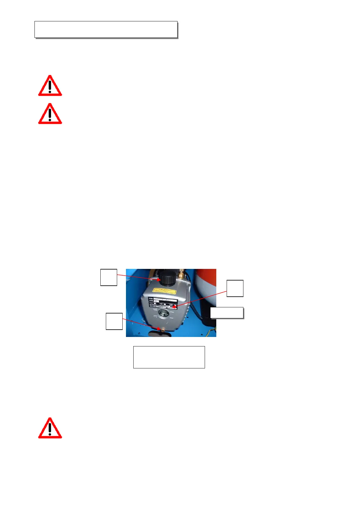 Periodicamente ( a seconda dell’uso), sostituire il filtro disidratatore e l’olio della pompa, pulire il filtro dello