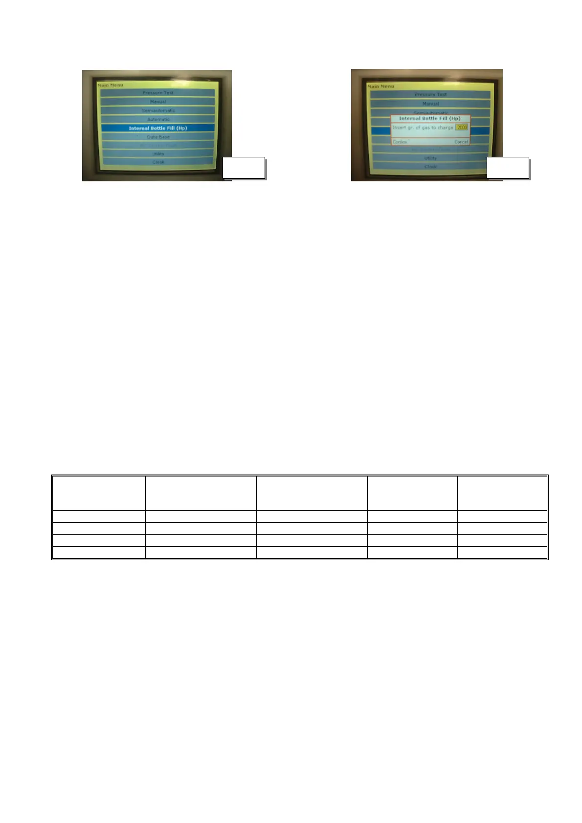 − Keeping pressed the down key during the pressure test the gas is recovered.