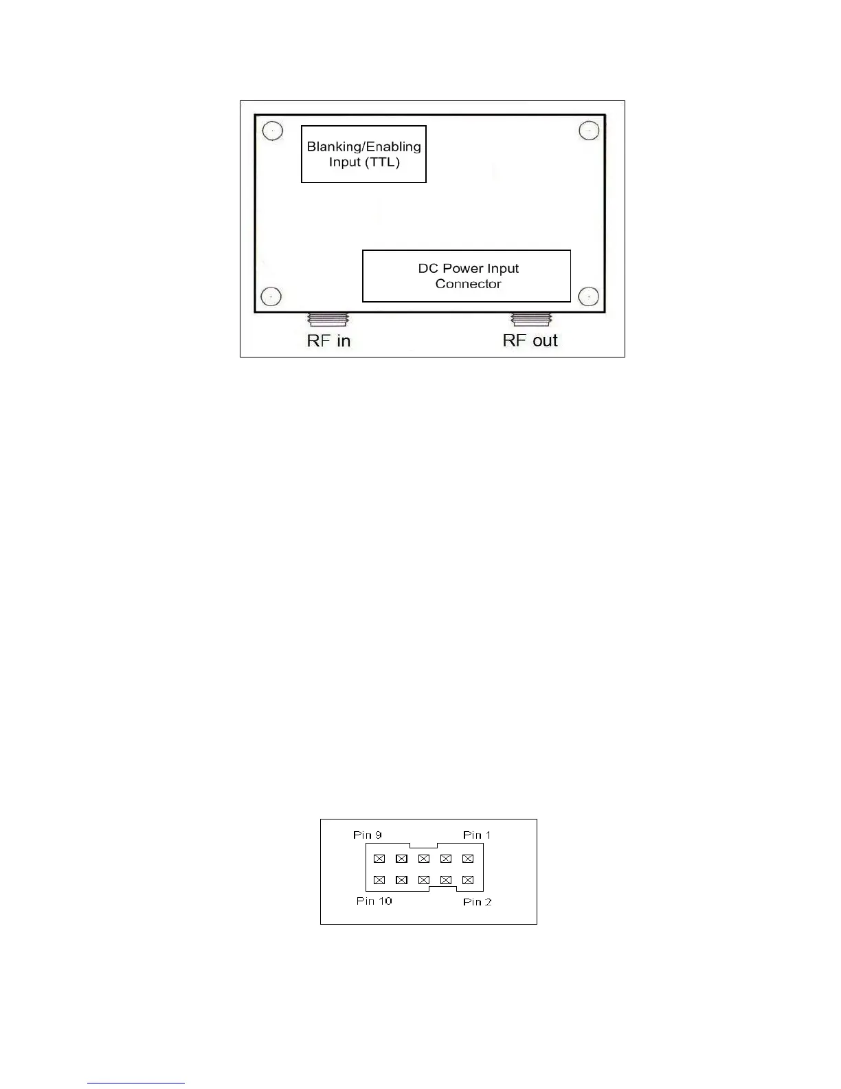 connectors. RF in and RF out are SMA jack connectors, Input TTL is an