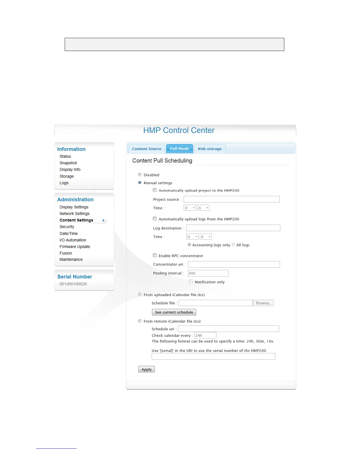 There are two ways to configure the Pull mode on a HMP unit: