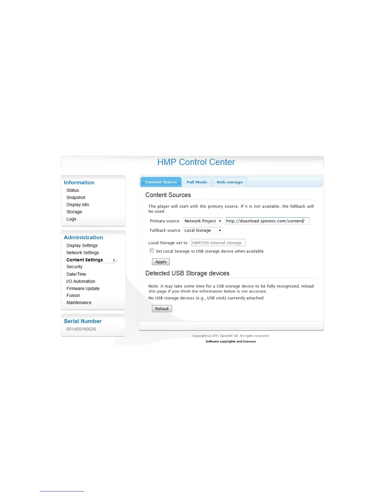 the internal storage of the player and then played. Once the content has been