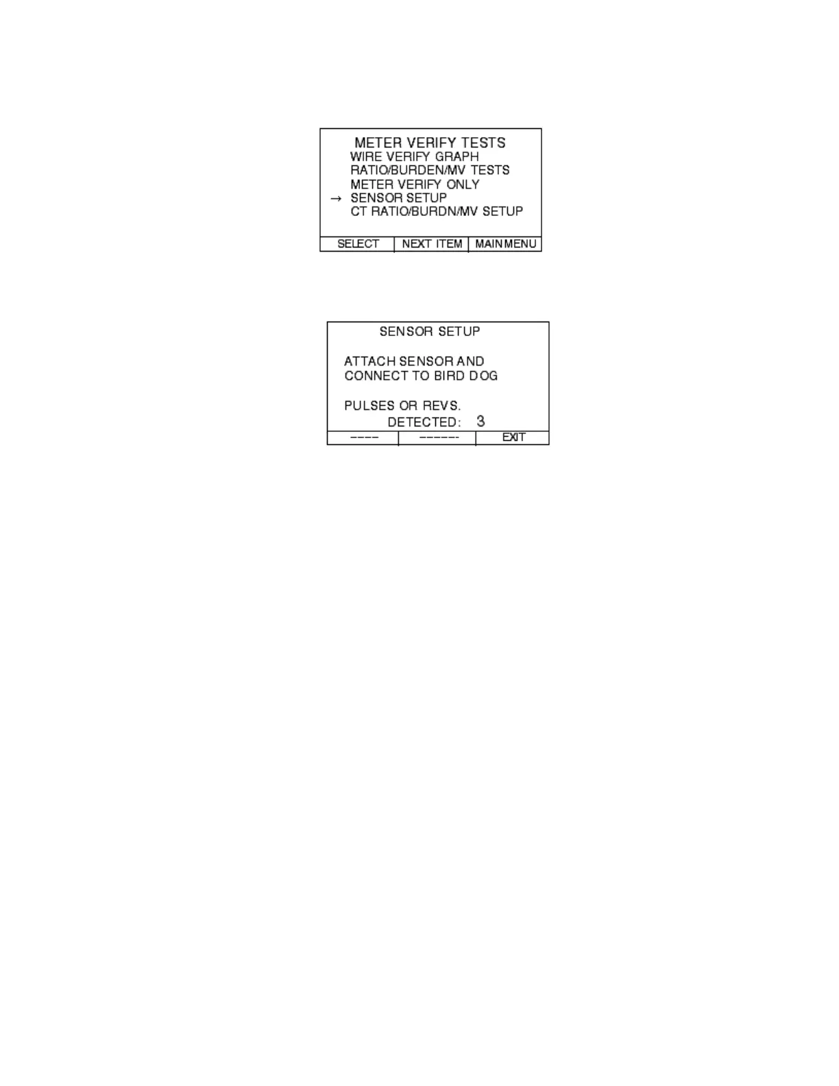 From the METER VERIFY TESTS menu move your curser down to SENSOR