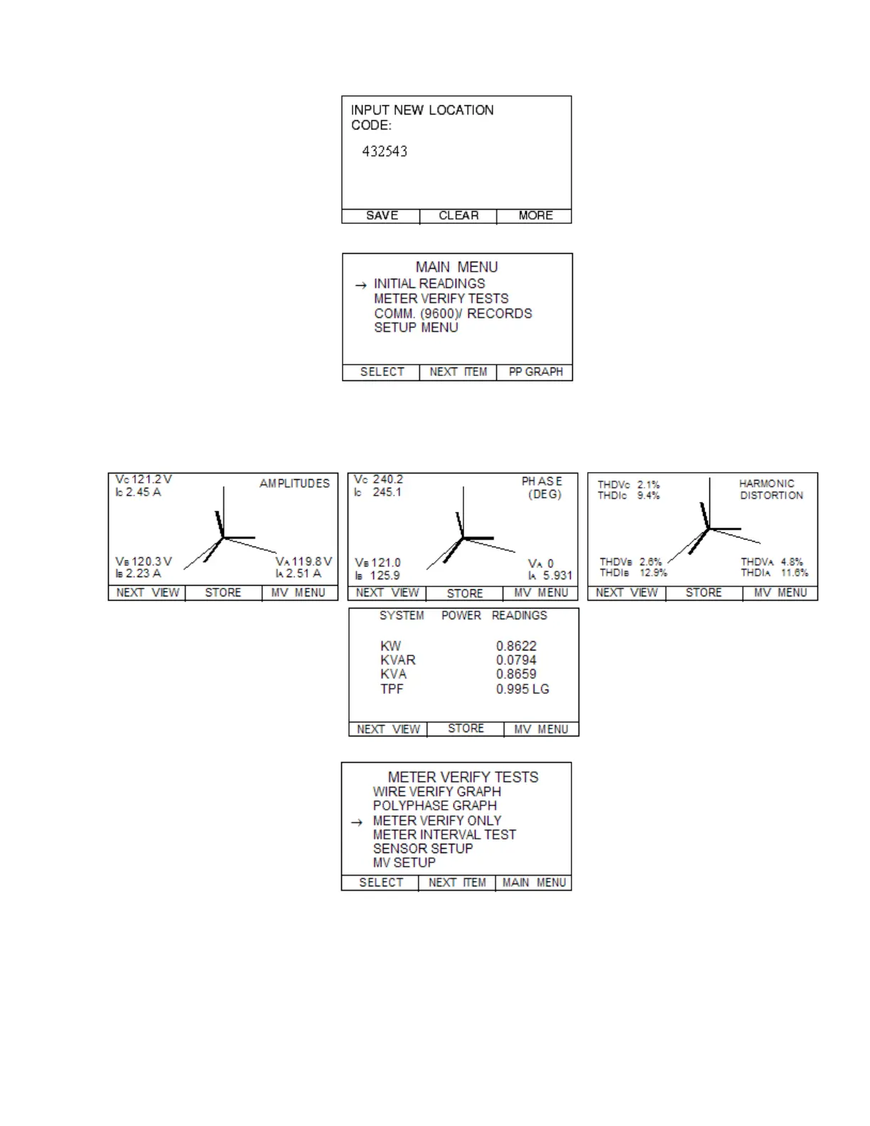 PHASE (DEG)angles, HARMONIC DISTORTION readings, and then finally the SYSTEM