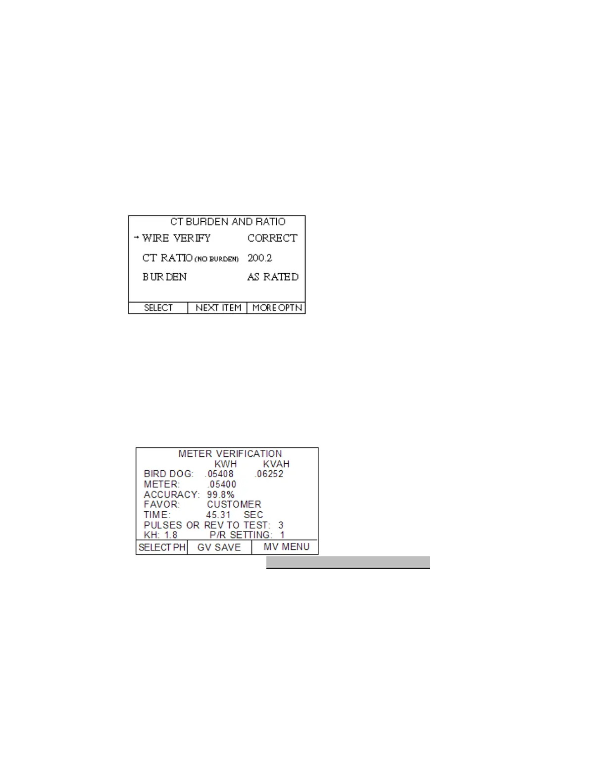 8.1 While in the CT RATIO AND BURDEN screen, press MORE OPTN