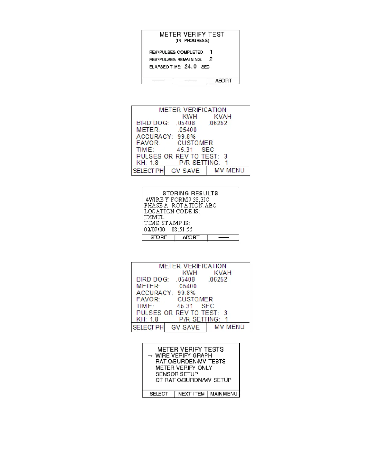 Steps 9.1 & 9.2—Review the METER VERIFICATION screen for proper