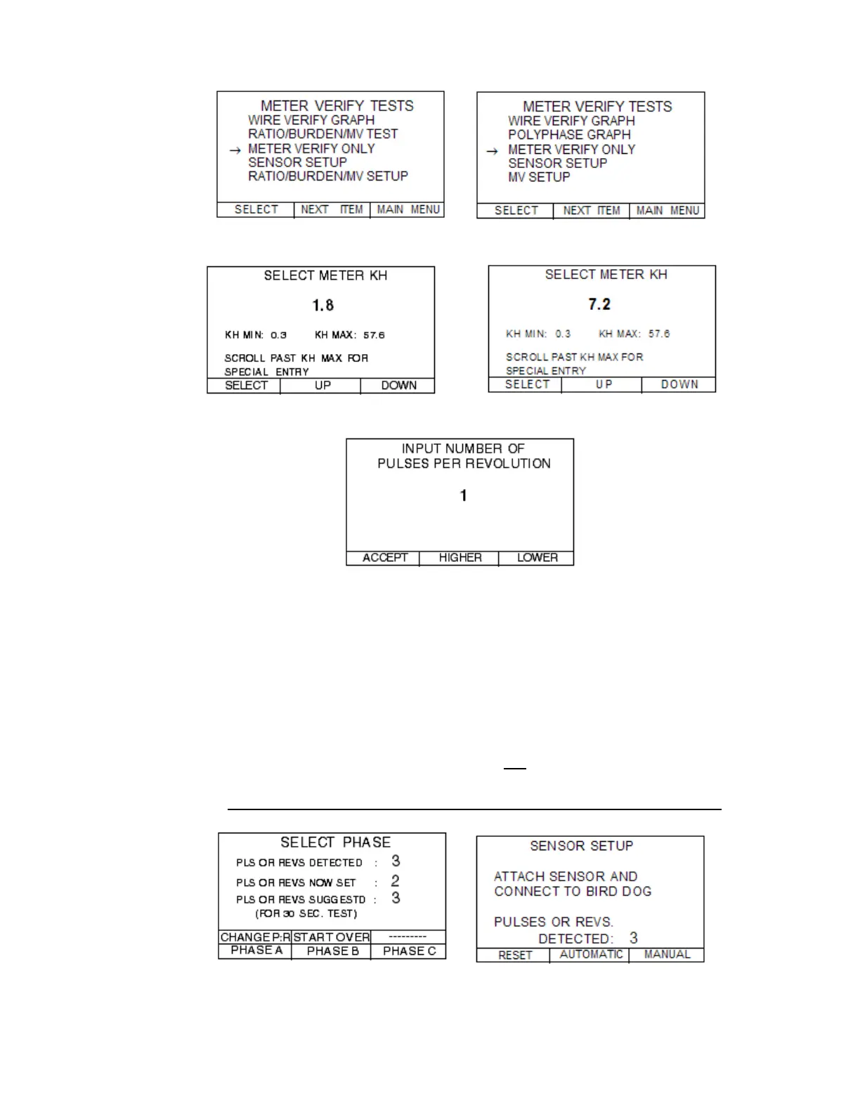 o If the same, select PHASE A (or B or C) by pushing momentarily (less than 2
