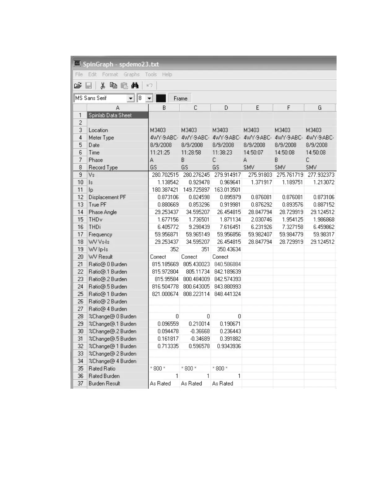 A SpinGraph data screen appears for file name spdemo23.txt. Only SpinGraph Deluxe