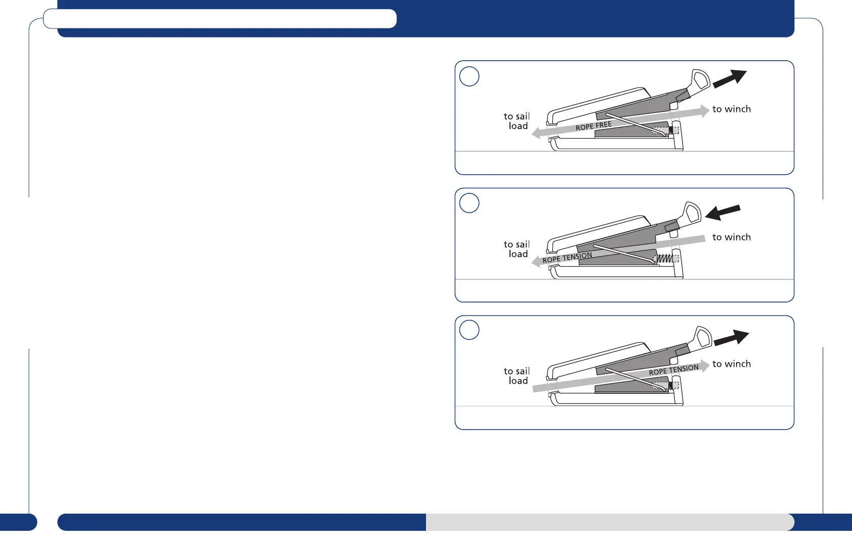 2. To lock line : Hoist sail and tension with winch. Before easing load from the winch, release the