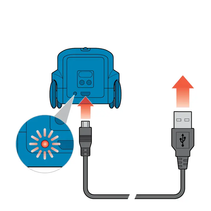 appropriate power source. Rear LED will blink while charging. Charge for 1 hour.