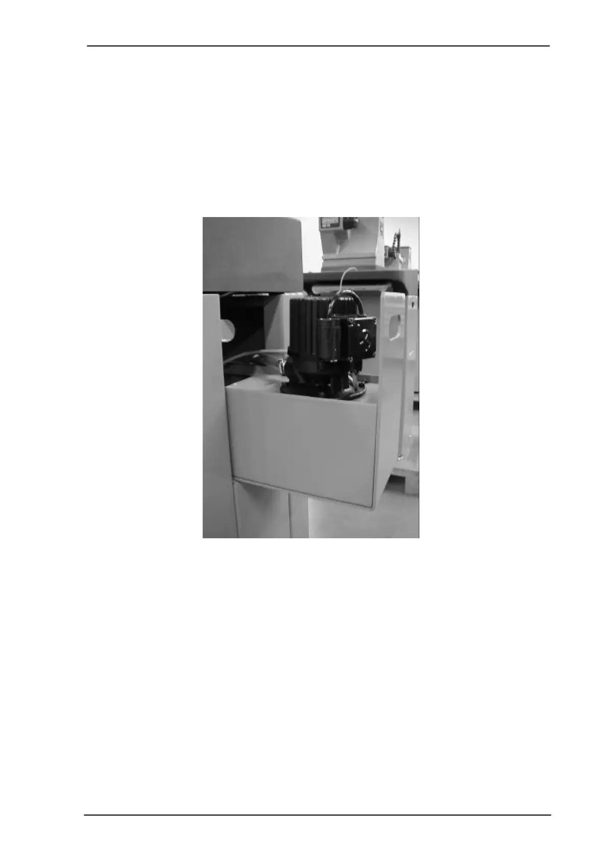 The coolant pump and the coolant tank are integrated into the base of the machine. Only