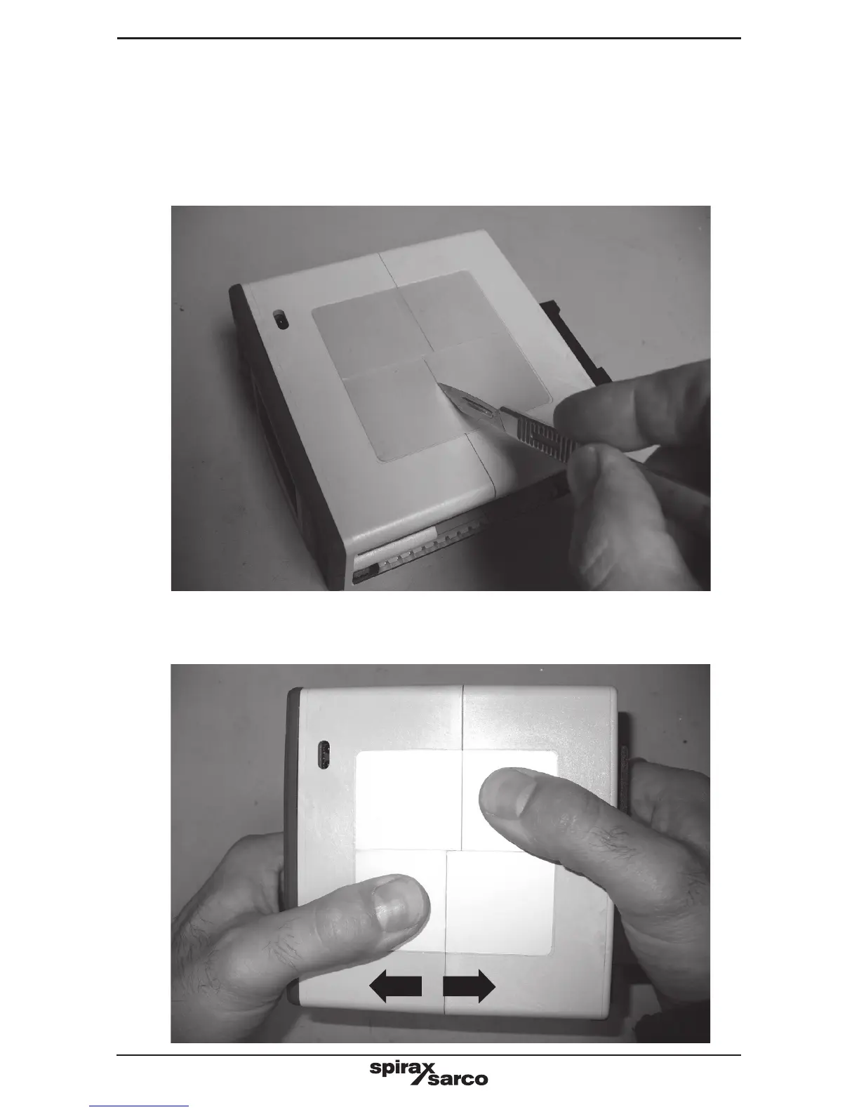 8.3.2 Squeeze enclosure in positions indictated to release locking tabs.