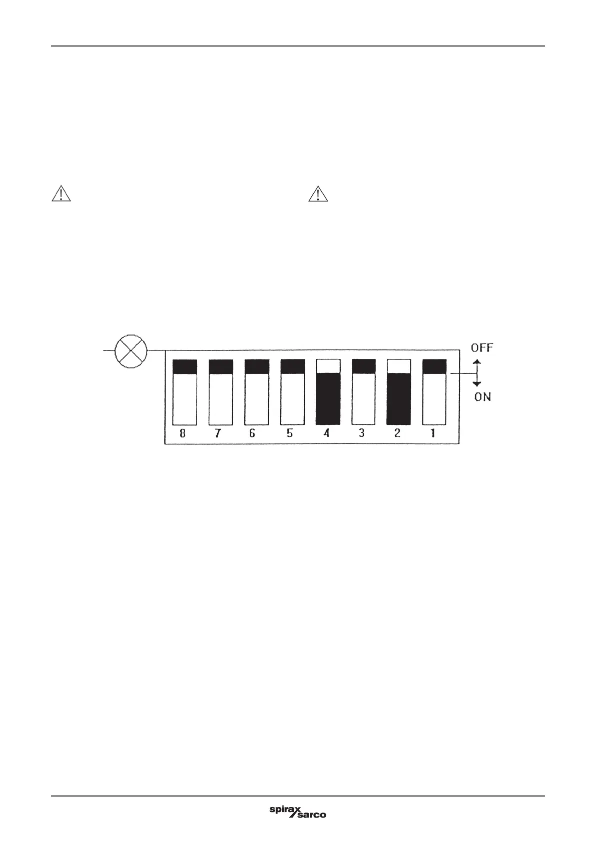 Close dipswitches on the positioner card to obtain the following