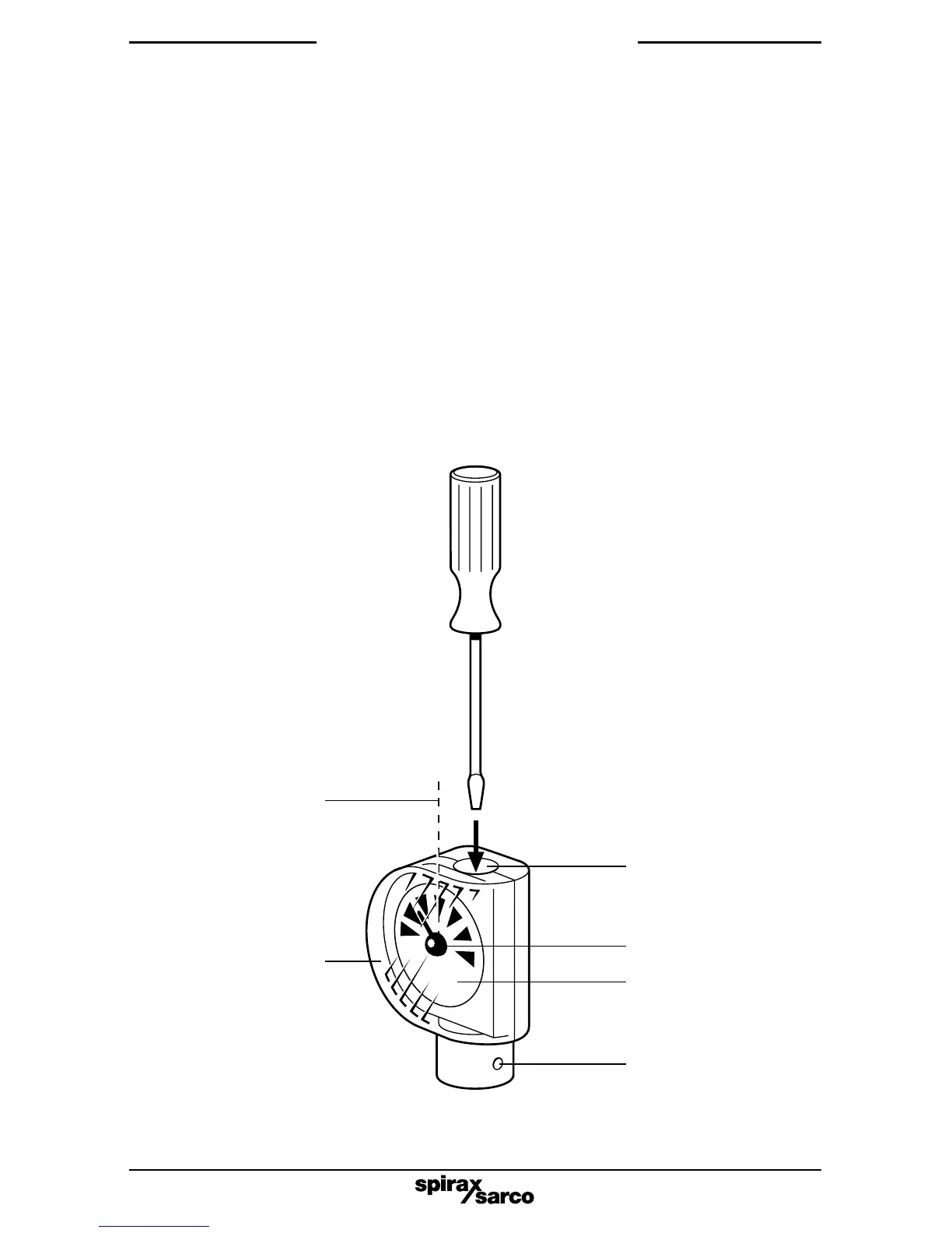 suitably sized screwdriver engaged in the adjustment drive (7) on the end of the indicator dial.