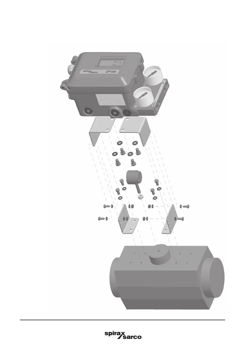 Spirax Sarco SP400 - Sequence for mounting an SP400 positioner to a rotary actuator