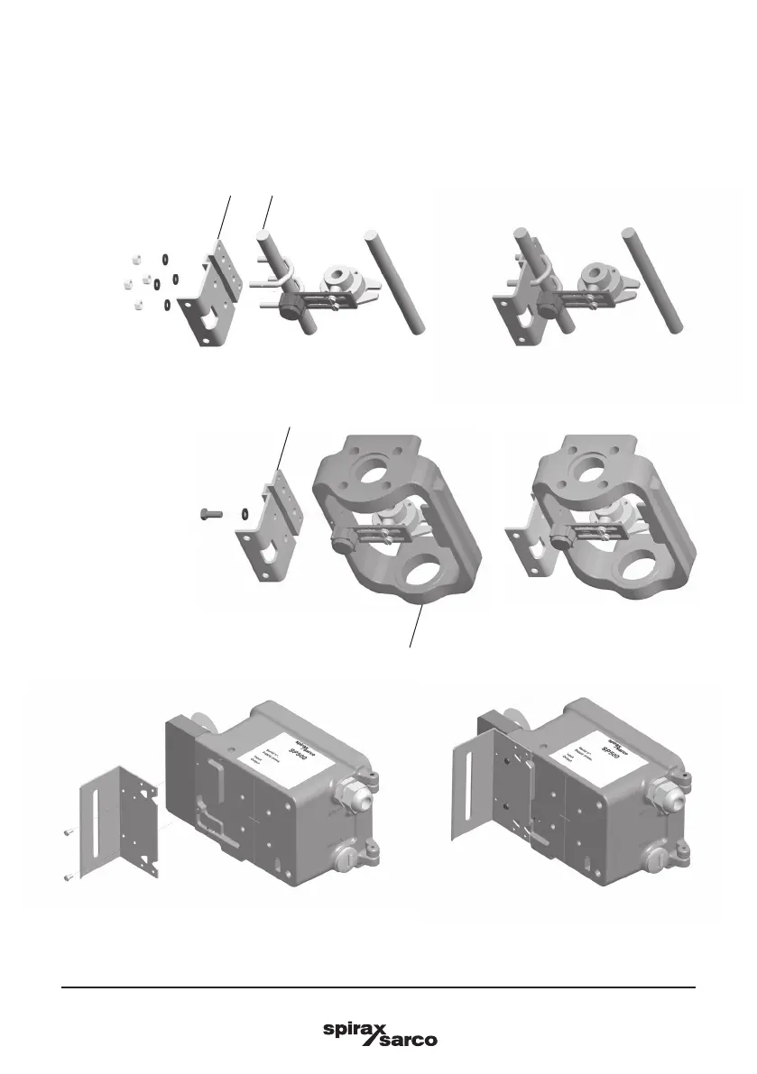 Loosely attach the positioner mounting plate to the actuator as shown in the following pictures: for