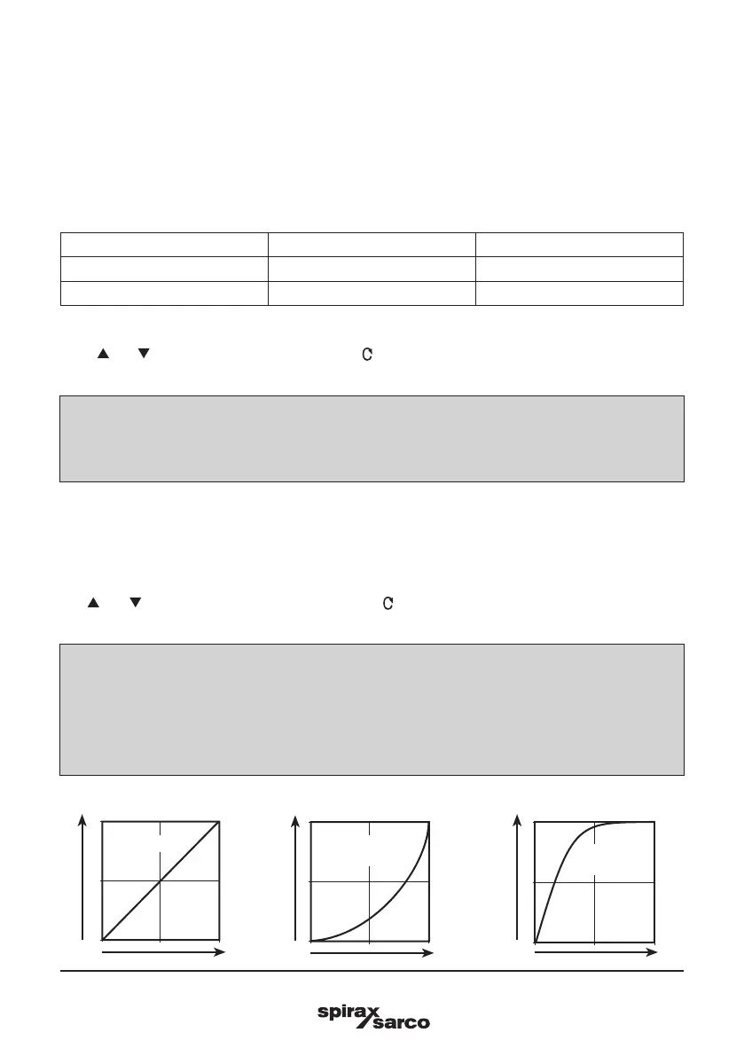 Provides selection of linear (LIN), equal percentage (EQUAL) or fast opening (FAST) characterisation.