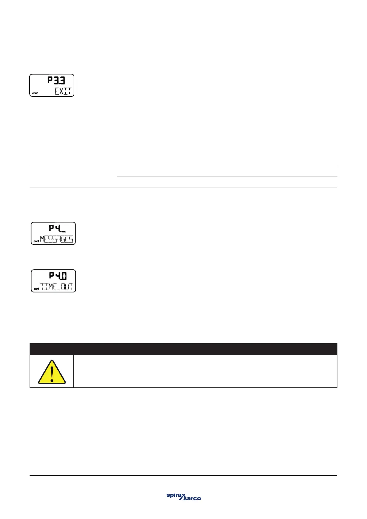 To leave the configuration level (with or without saving), press and hold ENTER until the countdown from 3 to 0 is finished.