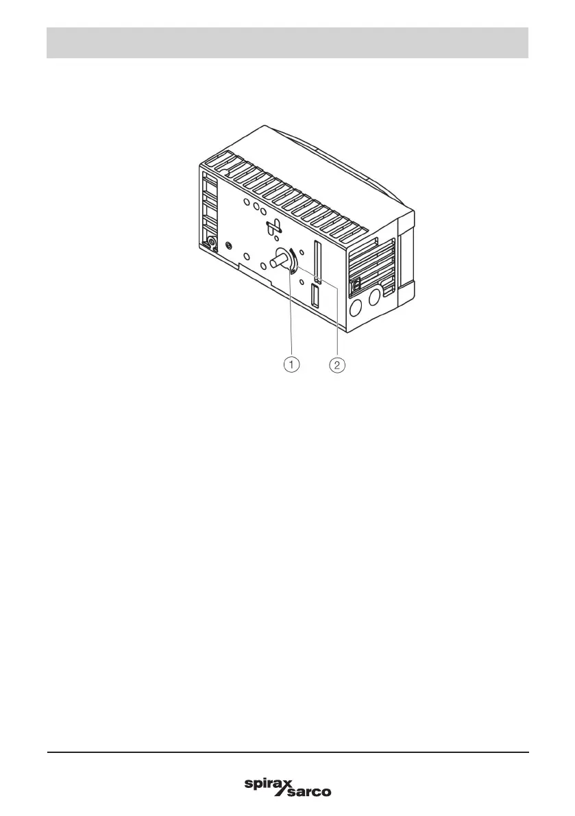 Arrow (1) on the device feedback shaft (position feedback) point must move between the arrow marks (2)