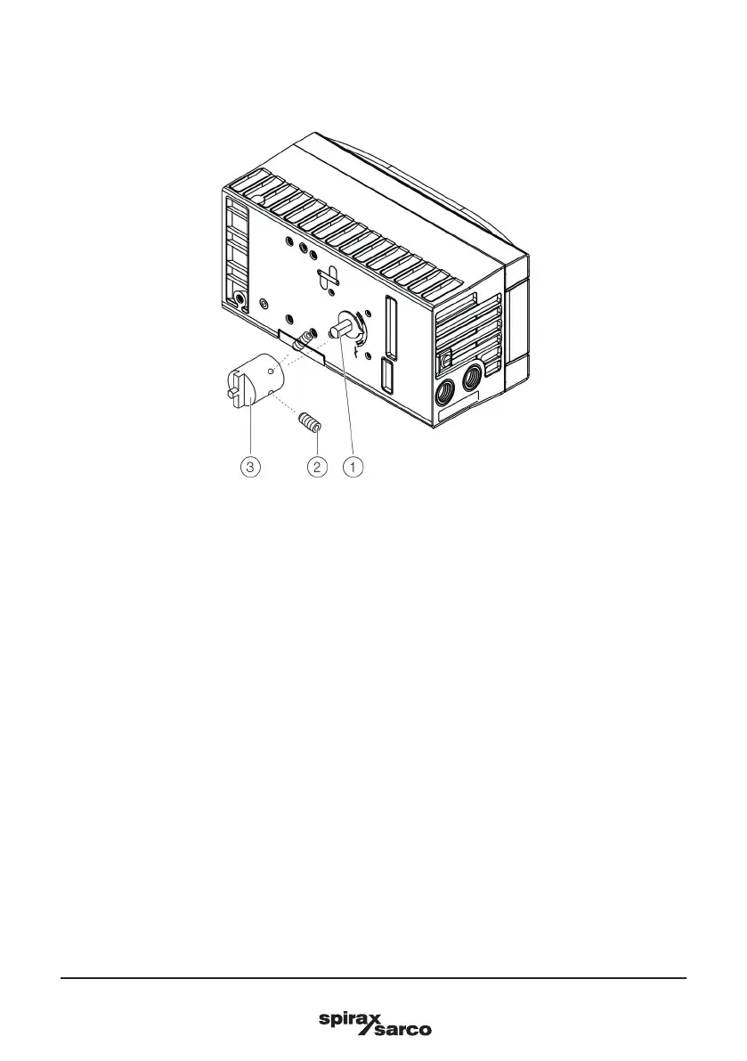 5. Place the adapter in the proper position on the feedback shaft and fasten with threaded pins (2). One of