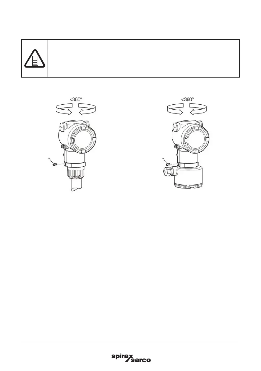 - The transmitter housing must not be rotated more than 360 degrees.