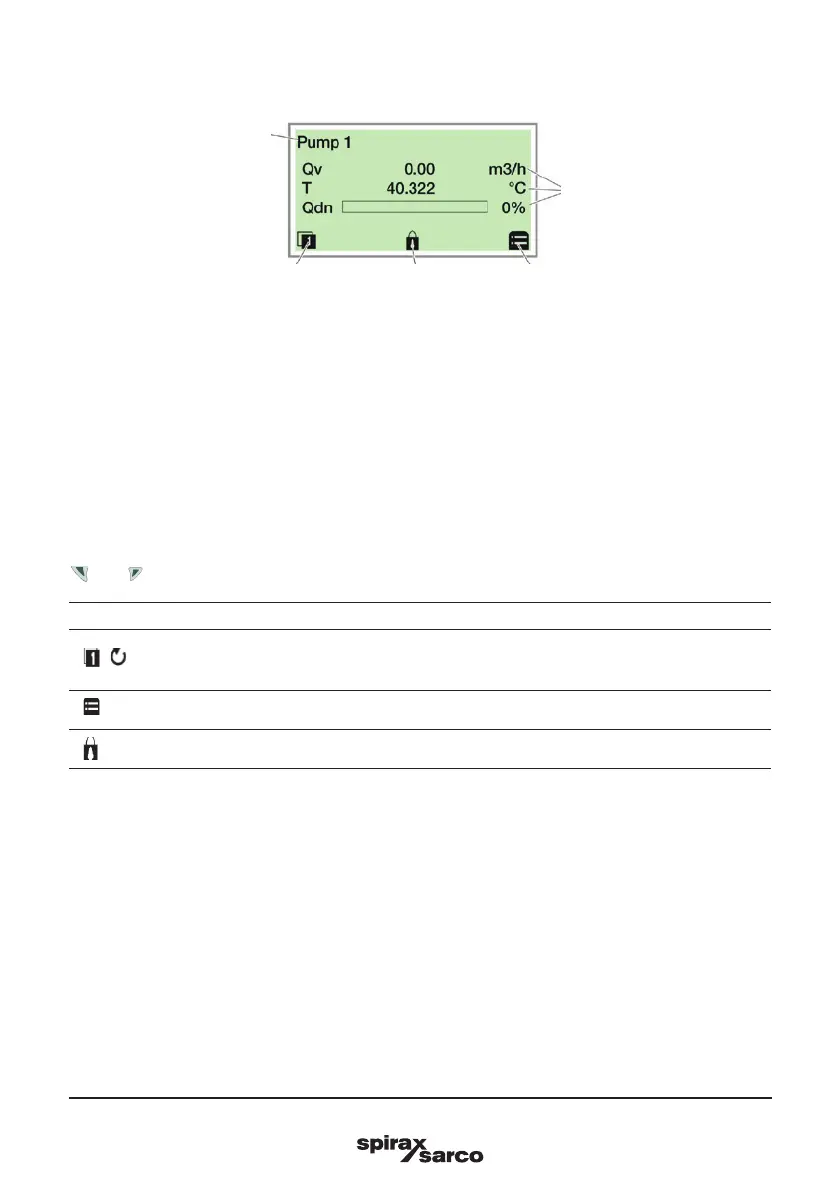 The symbols at the bottom of the process display are used to indicate the functions of the operating buttons