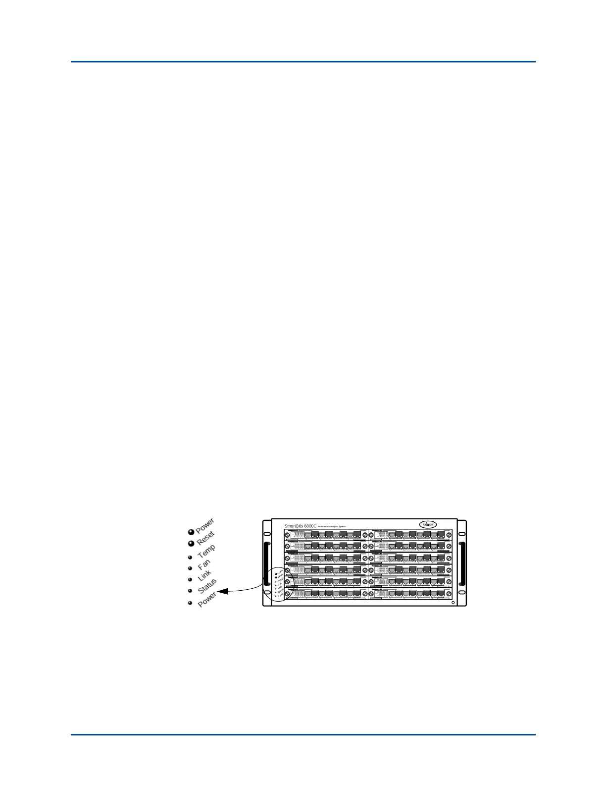 • New SmartBits 6000C front panel Power and Reset buttons, and LEDs. The LEDs are