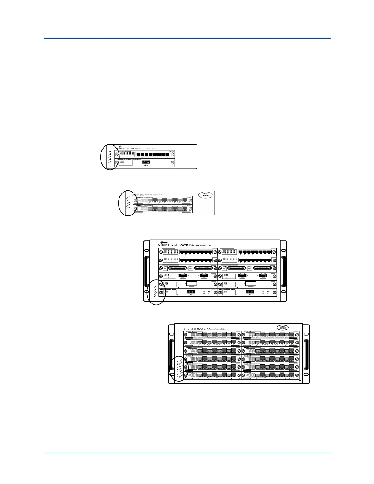 the front panel; on the SmartBits 6000x chassis, they are located on the lower left side of