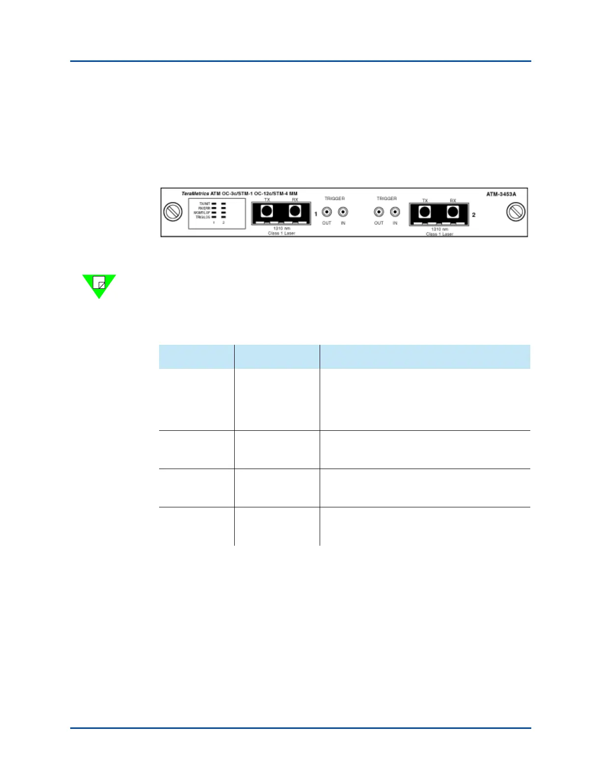 Every SmartBits ATM TeraMetrics module has its own LEDs, which are located on the