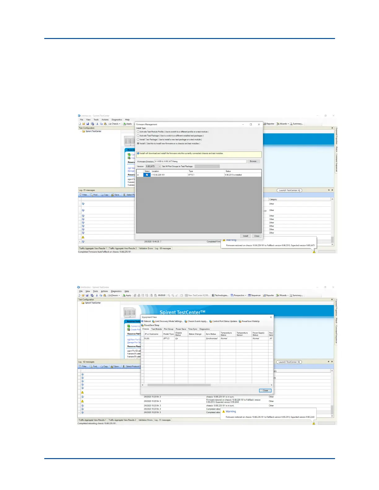installed version of Spirent TestCenter, if there is a firmware upgrade failure. You will see