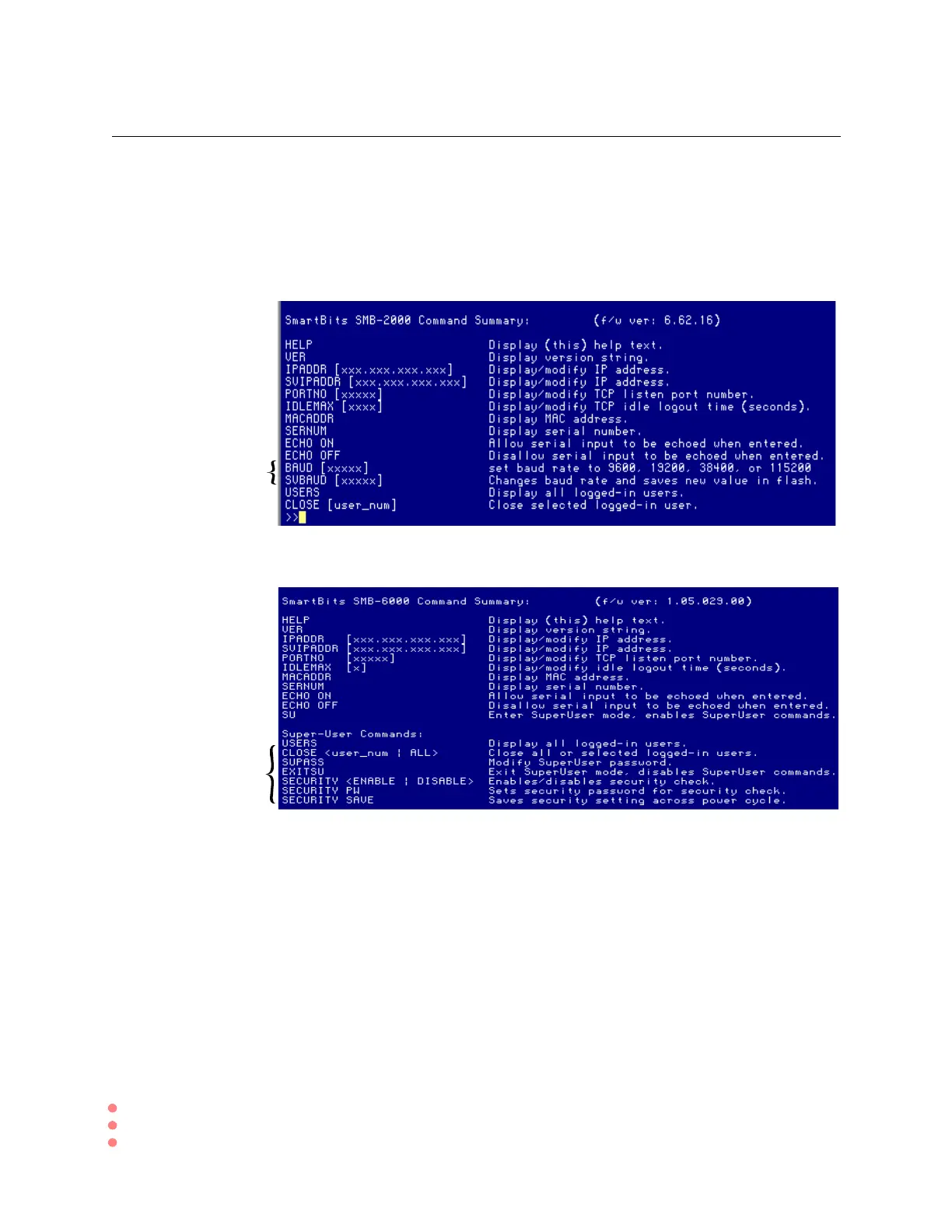 Figure G-1. SmartBits 200/2000 Firmware Commands available via HyperTerminal
