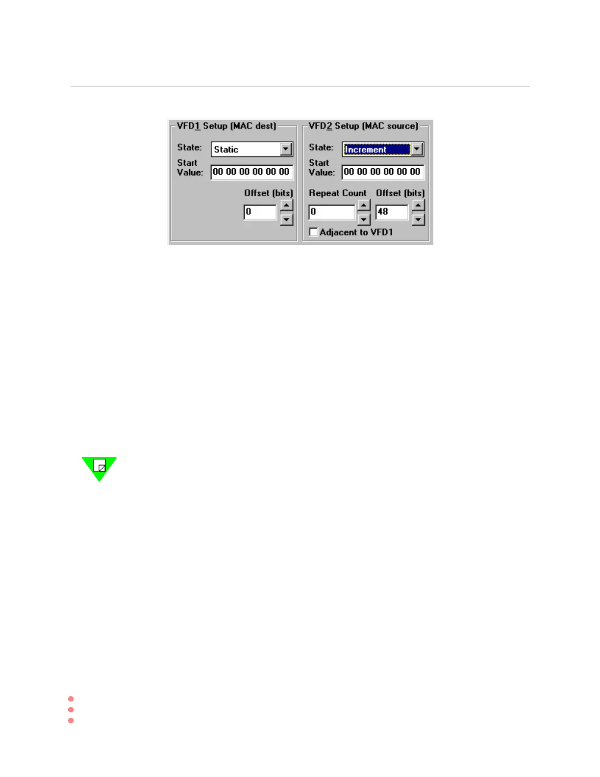Default offsets for VFD1 & 2 are at the Destination Address and Source Address,