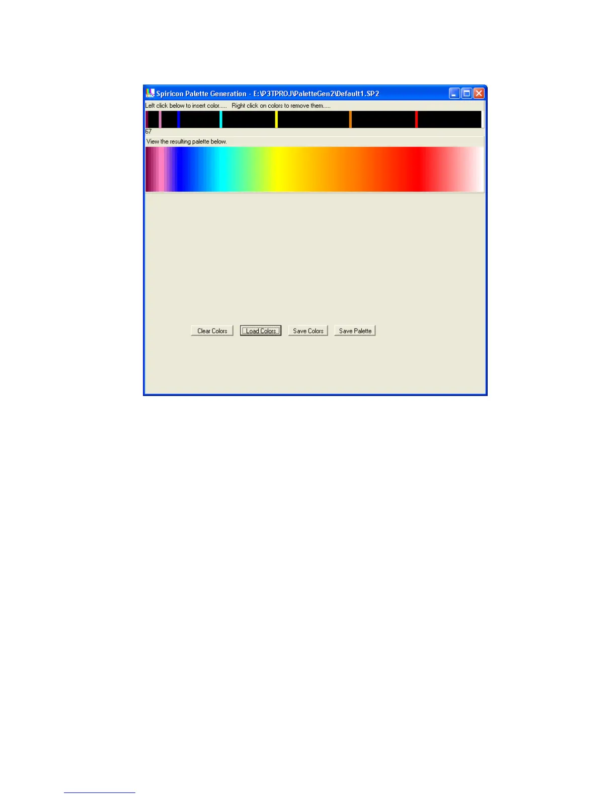 Left mouse clicking on a location in the upper bar will allow you to place a seed color at that physical