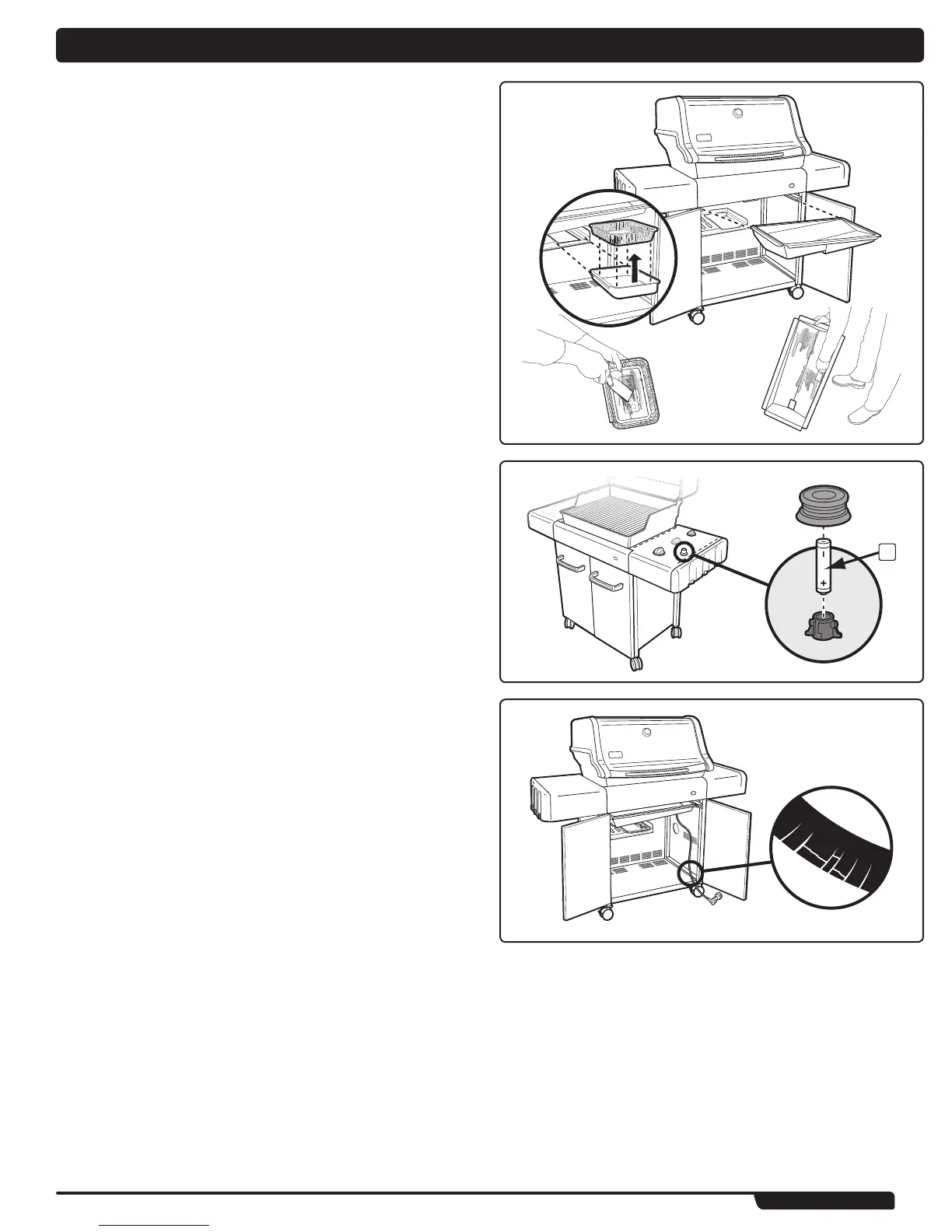 the grease tray and drip pan with a soap and water solution, then rinse with clean water.