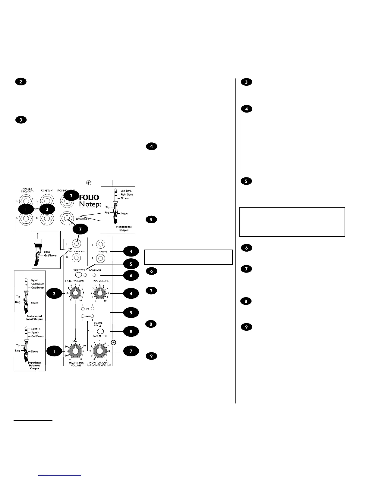 stereo mix, without using up valuable input channels. The input is unbalanced, and the jacks are connected so