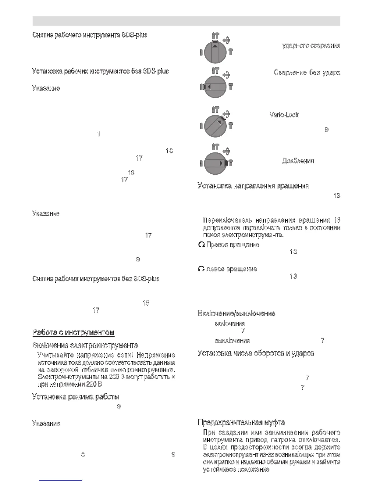 Óêàçàíèå: Íå ïðèìåíÿéòå èíñòðóìåíòû áåç SDS-