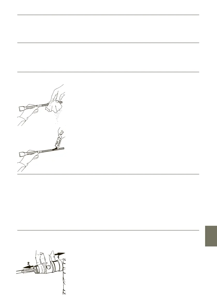 OBS! Kontroller låsen – det skal ikke være mulig å trekke ut meiselen.