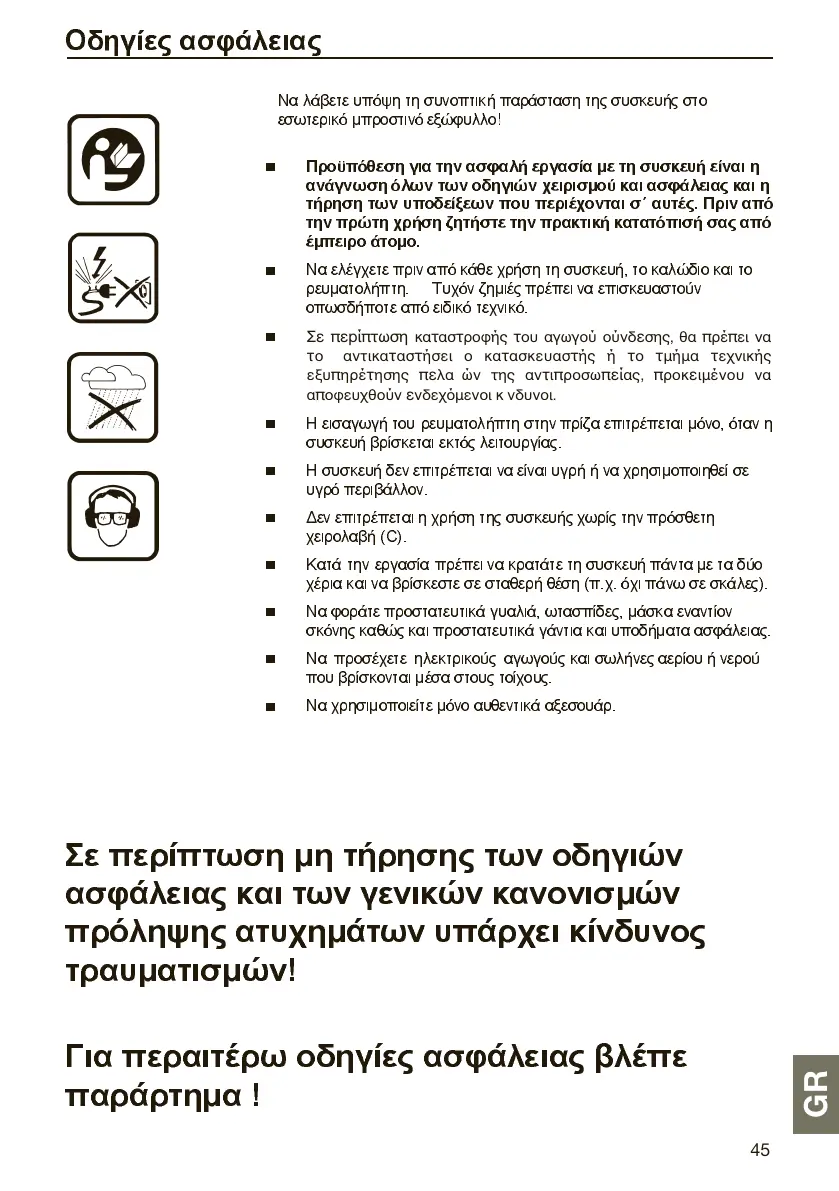 Να φοράτε προστατευτικά γυαλιά, ωτασπίδες, µάσκα εναντίον