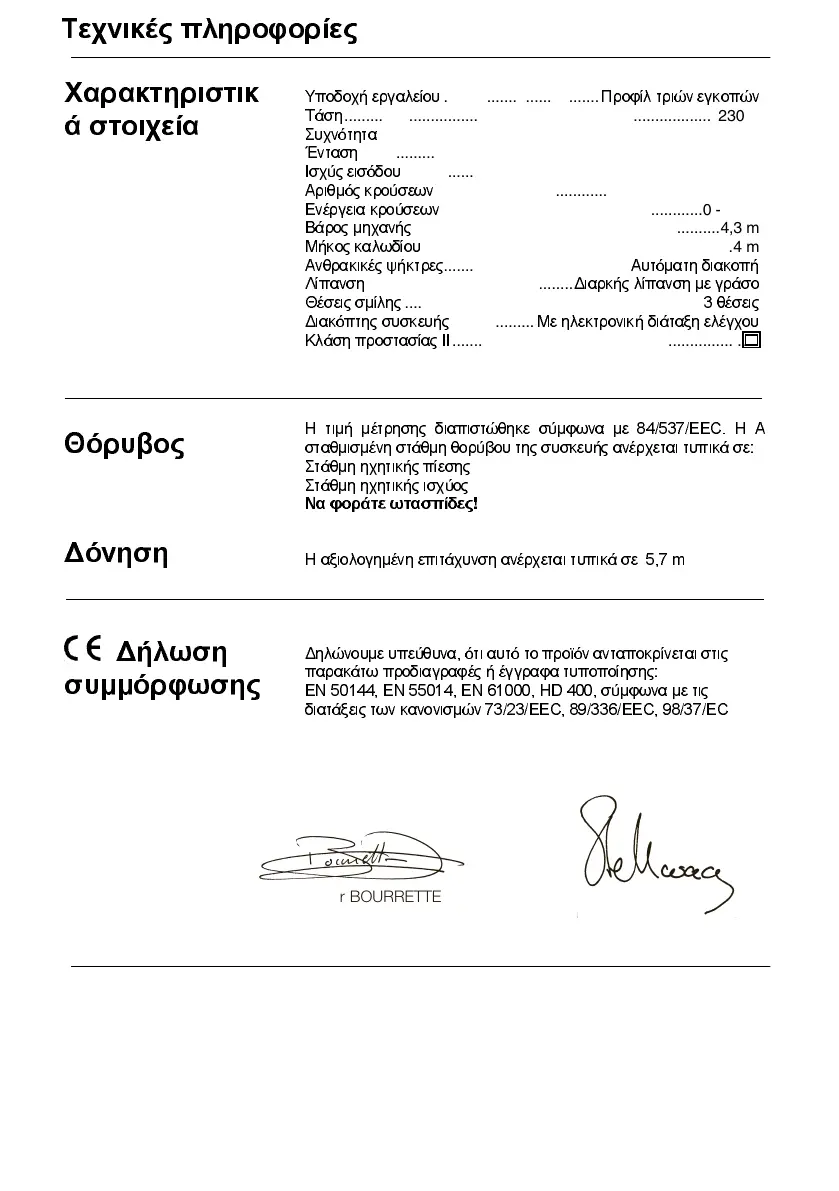 EN 50144, EN 55014, EN 61000, HD 400, σύµφωνα µε τις