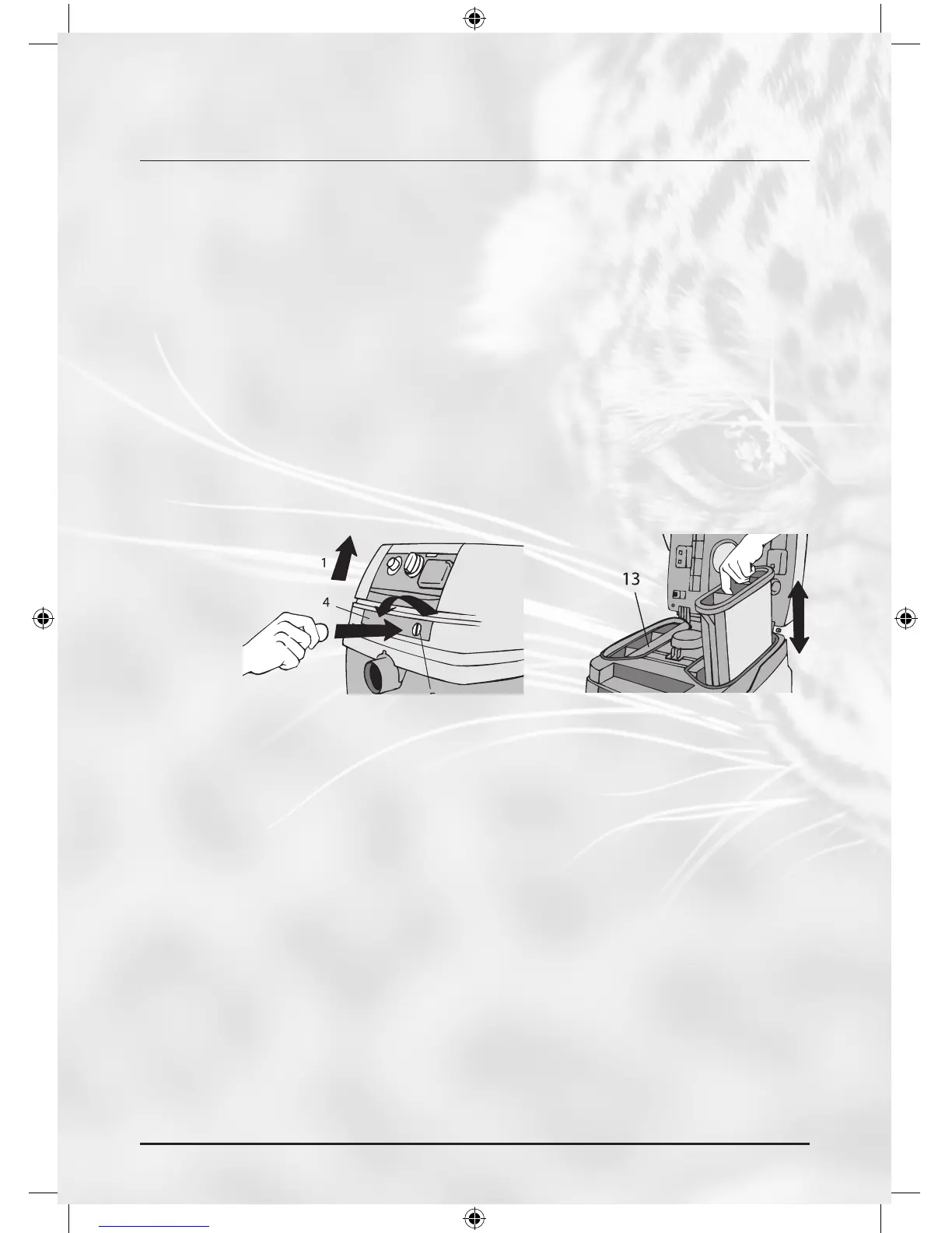 • Deksel openen en de twee filters (12) langs boven uittrekken