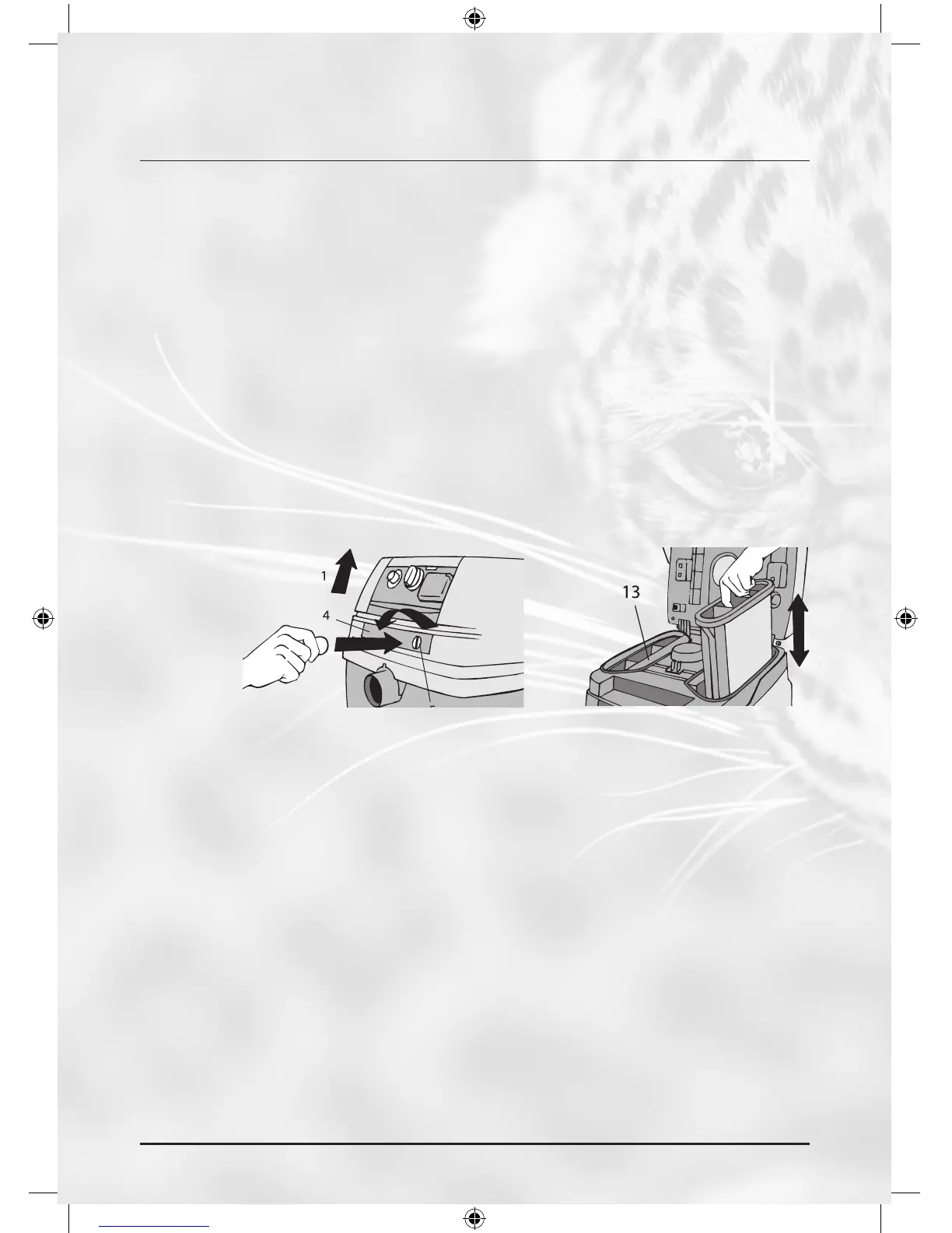• Avatkaa kansi ja nostakaa yläsuuntaan kumpikin suodatin (12).