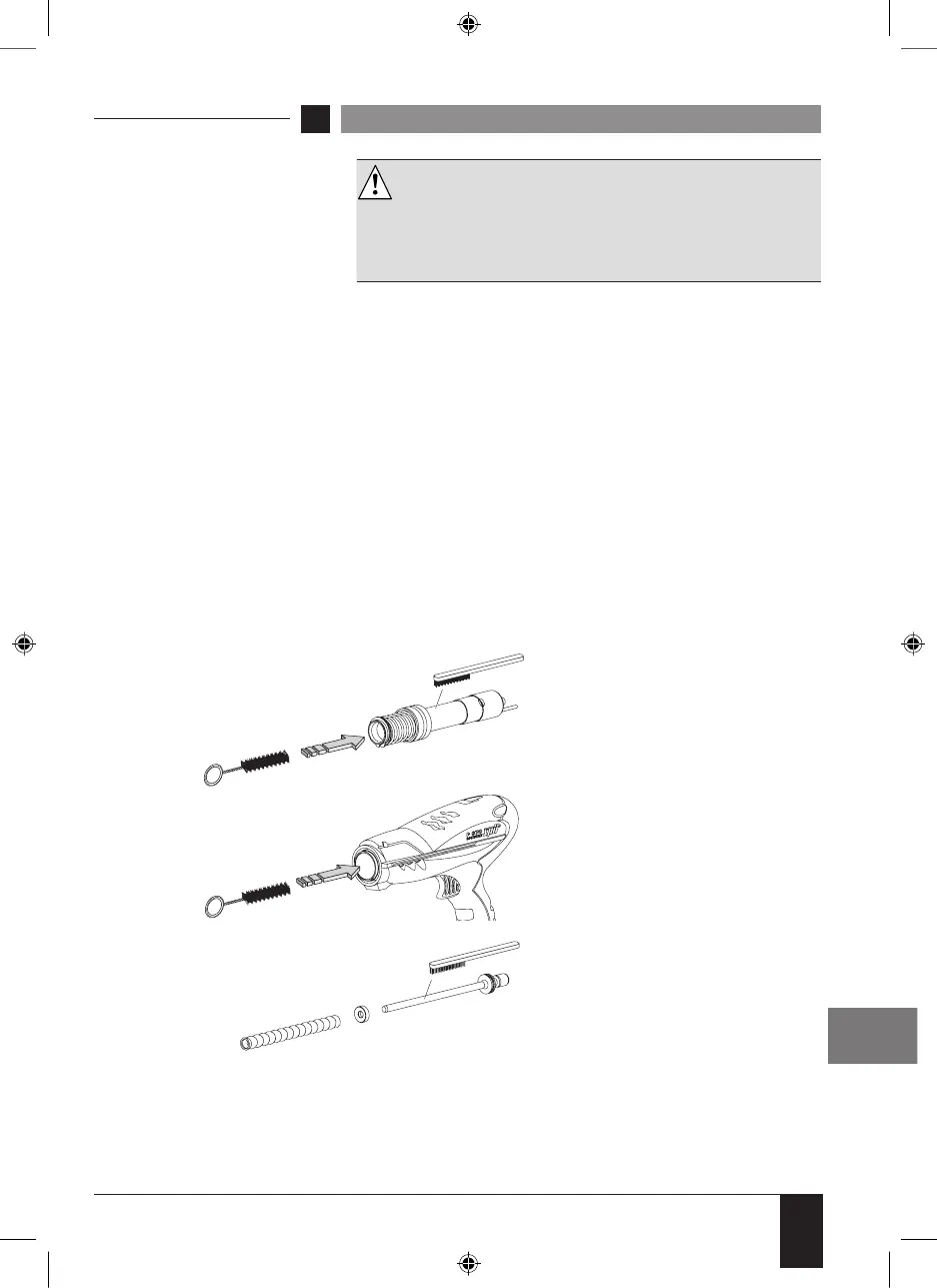 Použite príslušenstvo na čistenie, ktoré je v puzdre na pištoľ.