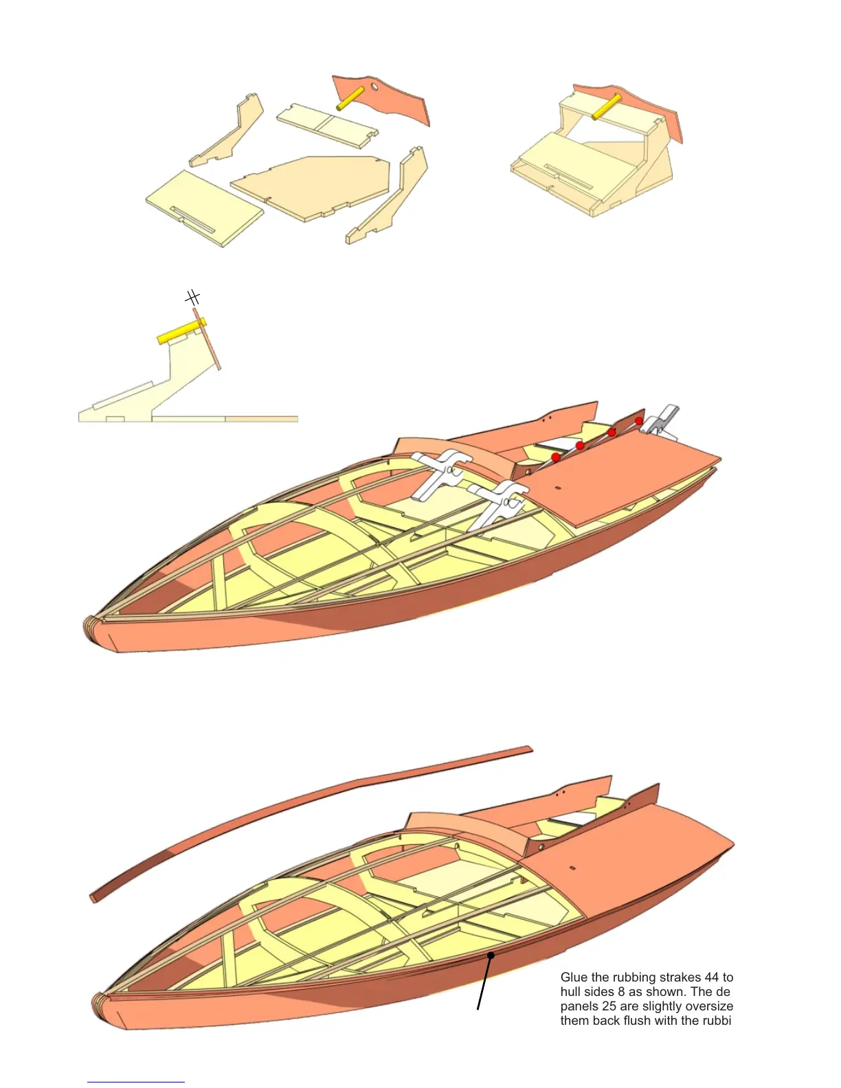 Glue the rubbing strakes 44 to the